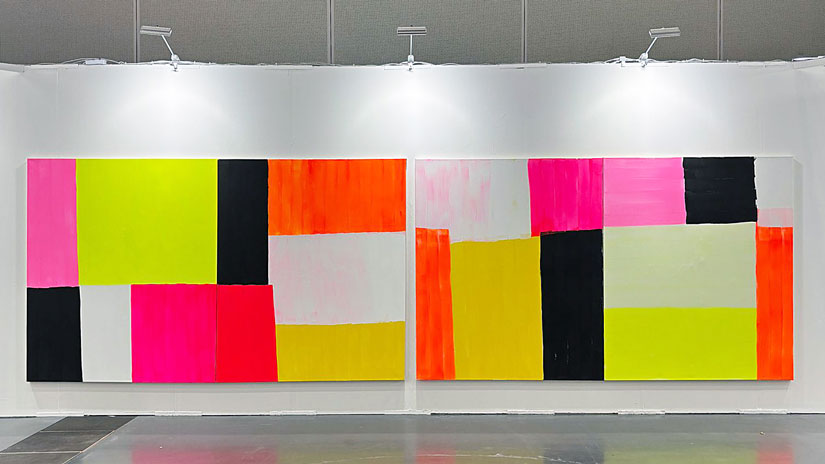 In der 2017 in Japan entstandenen Arbeit „Kakemono – Japanese Siteplan“ beispielsweise, führte mich der direkte, konzentrierte Einsatz von leuchtenden Pigmenten auf japanischem Sho-Ji-Papier, inspiriert von der traditionellen Rollbildmalerei, zu einer neuen Qualität: „Wabi-Sabi“-Ästhetik als Farbfeldmalerei ? Reduktion auf das Wesentliche, die Klarheit der Form, der Pinselstrich parallel zum Atem, gezeichnet wie die Rechenspuren im Sand des Gartens. Das Primat der Farbe.